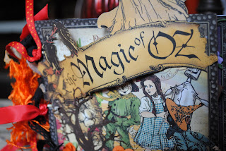 Next month I am taking our Girl Scout troop to a place called Storybook Land. Storybook Land is of course filled with all kinds of fun stuff that is based on children's stories and nursery rhymes. The place is filled with the likes of Humpty Dumpty, Jack and Jill, Paul Bunyan, and even a Medieval castle! Of course my favorite thing to see is the Land of Oz!! So for that trip, I made a Graphic 45 Magic of Oz mini for all our pictures. It is going to be so fun filling this album from our trip!